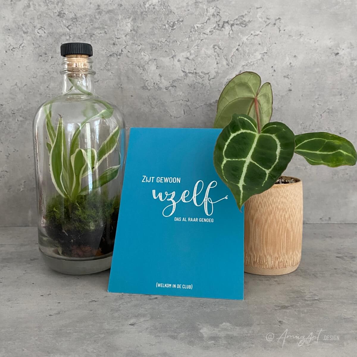 Being weird is a gift. Time to just be you! If you need a card to celebrate someone’s weirdness, then you’ve found it! This card is written in Flemish and literally says: “Just be yourself; that’s weird enough already.”